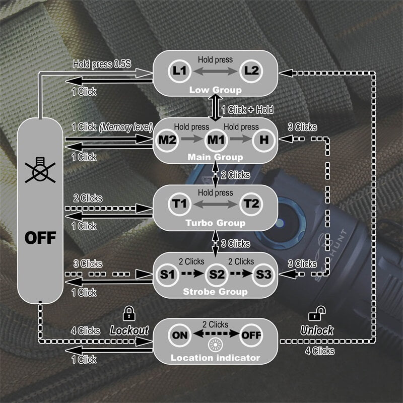 The M300 V2 Green is a powerful compact flashlight built for performance, portability, and ease of use. Featuring the CREE XHP50.3 HI Cool White (6500K) LED, it delivers an impressive 2700 ANSI lumens with a focused beam that reaches up to 283 meters, making it ideal for tactical, outdoor, and everyday carry scenarios.